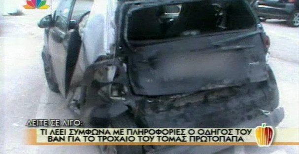 Η εκπομπή «Mίλα» της Τατιάνας Στεφανίδου προέβαλε βίντεο με εικόνες του κατεστραμμένου αυτοκινήτου το οποίο οδηγούσε ο Τόμας Πρωτόπαπας.