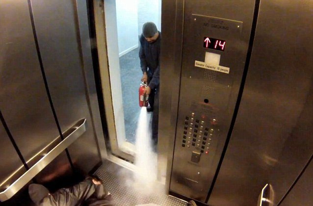 Και ένας νεαρός που πήρε ένα πυροσβεστήρα και προσπάθησε να κουλάρει τα πράγματα.