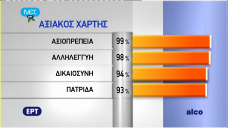 Στον αντίποδα σε πλήρη απαξίωση βρίσκεται το πολιτικό σύστημα, η Βουλή, ο συνδικαλισμός, τα ΜΜΕ και η δικαιοσύνη.