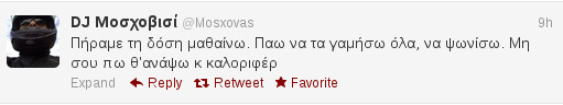 Πήραμε τη δόση μαθαίνω. Πάω να τα γ...... όλα, να ψωνίσω. Μη σου πω θ' ανάψω και καλοριφέρ» έγραψε με χιούμορ στο Τwitter ο Αγγελος Μόσχοβας.
