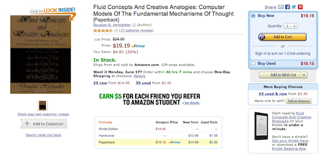 Το πρώτο βιβλίο που βγήκε στο Amazon στις 15 Ιουλίου του 1995 ήταν το «Fluid Concepts And Creative Analogies: Computer Models Of The Fundamental Mechanisms Of Thought»