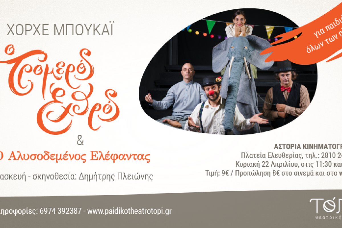 Η παιδική παράσταση που σπάει ταμεία στην Αθήνα έρχεται ξανά για δύο παραστάσεις στο Ηράκλειο. Αυτή την φορά στο Κινηματογράφο Αστόρια Ο τρομερός εχθρός και ο αλυσοδεμένος ελέφαντας στο Ηράκλειο!