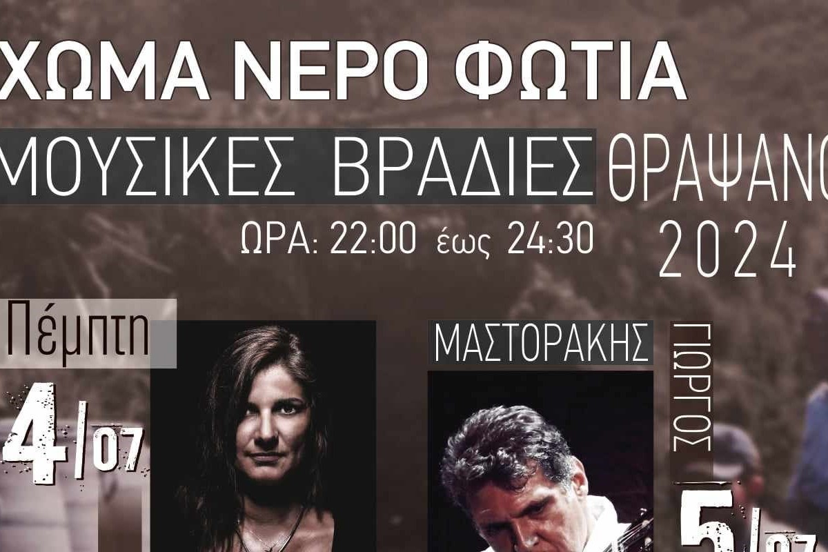 Τις βραδιές θα πλαισιώσουν μουσικά τα συγκροτήματα της Βούλας Στρατάκη, Γιώργου Μαστοράκη, Γιώργου Μανωλάκη, και Τζωρτζίνας Αλεξάκη, με δωρεάν είσοδο σε όλους τους επισκέπτες.