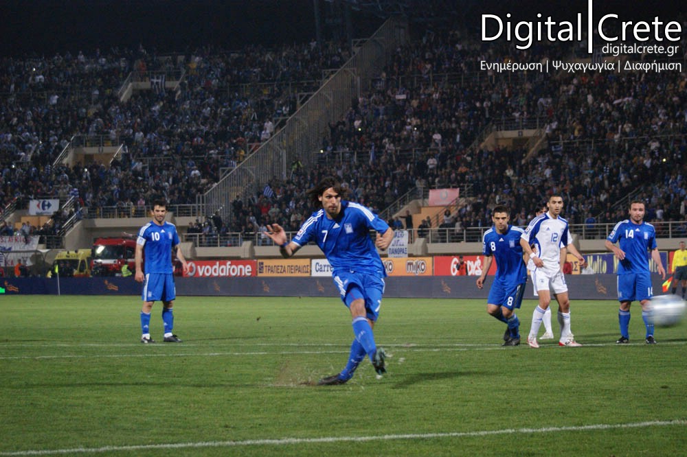Η Εθνική Ελλάδος νίκησε το Ισραήλ στο ασφυκτικά γεμάτο Παγκρήτιο στάδιο με σκόρ 2-1.