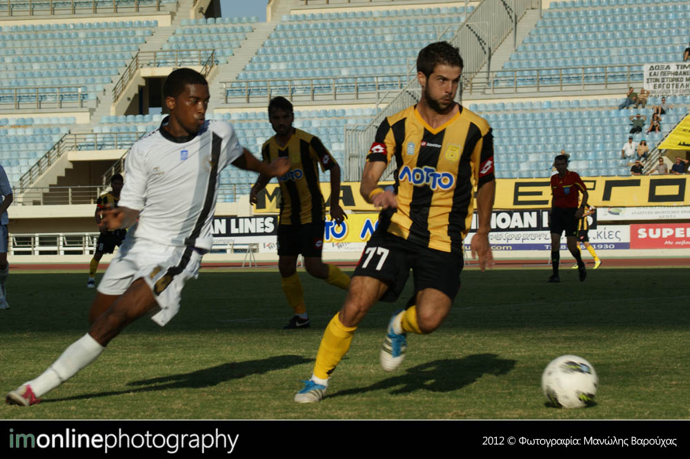 Στην πρεμιέρα του Εργοτέλη στην Football League, επικράτησε της Δόξα Δράμας με 1-0 στο Παγκρήτιο στάδιο.
