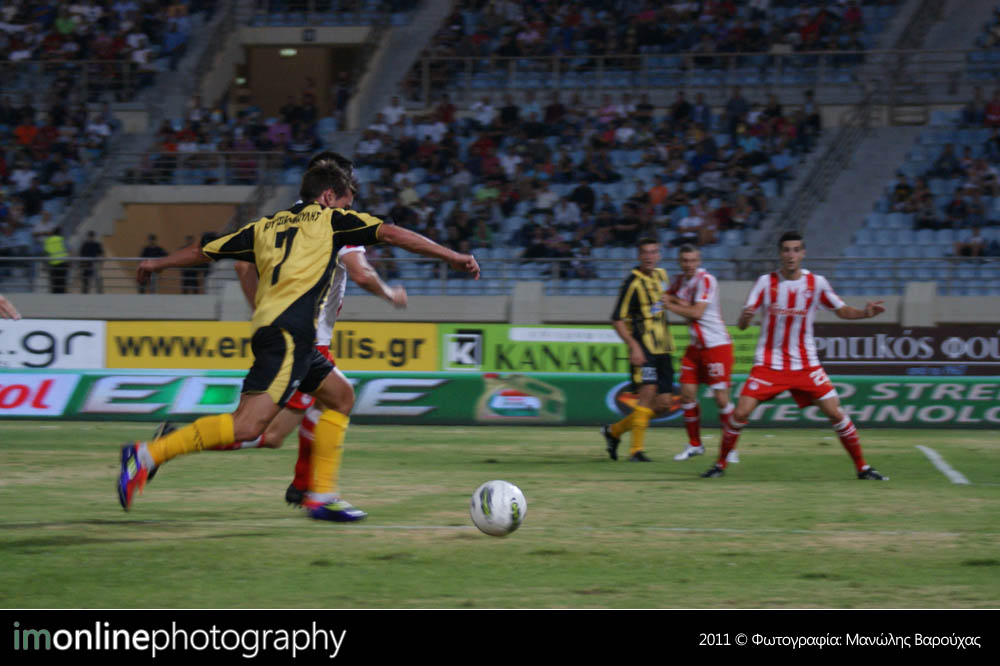 Ο Εργοτέλης δεν τα κατάφερε απέναντι στον Ολυμπιακό στο Παγκρήτιο στάδιο και γνώρισε την ήττα, πρώτη εντός έδρας με 2-3.