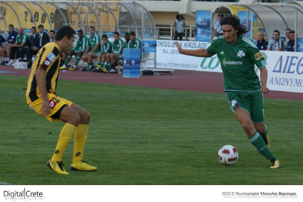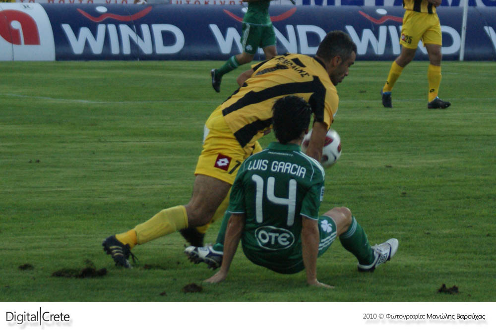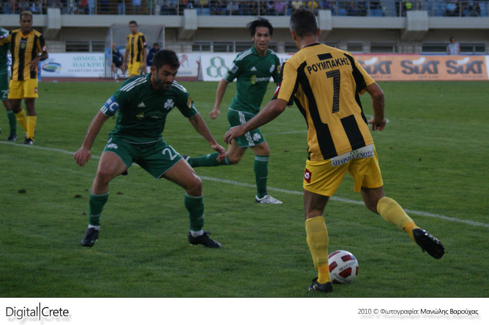 Ο μέτριος Εργοτέλης γνώρισε την βαριά ήττα στο Παγκρήτιο στάδιο με 1-4 από τον πολύ καλό Παναθηναϊκό. Πλήθος οπαδών βοήθησε χωρίς αντίκρισμα στην προσπάθεια του Εργοτέλη.