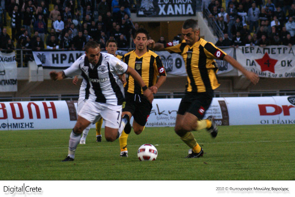 Ο Εργοτέλης αν και βρέθηκε μπροστά στο σκορ με ένα υπέροχο γκολ του Μπούτιμιρ, γνώρισε την ήττα, δεύτερη σερί στο Παγκρήτιο στάδιο από τον ΠΑΟΚ στην εκπνοή του αγώνα.