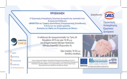Ενημερωτική εκδήλωση ο ΟΑΕΔ - Προβολή του Έργου Σχολών Μαθητείας και Γραφείων Διασύνδεσης Επαγγελματικής Εκπαίδευσης