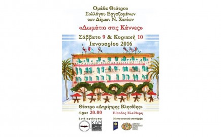 Η Ομάδα Θεάτρου του Συλλόγου Εργαζομένων των Δήμων Ν. Χανίων παρουσιάζει το έργο «Δωμάτιο στις Κάννες», το Σάββατο…