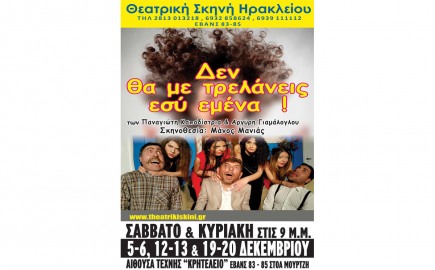 Σας προσκαλούμε να παρακολουθήσετε την θεότρελη κωμωδία των Π. Καποδίστρια και Α. Γιαμάλογλου « Δεν θα με τρελάνεις…